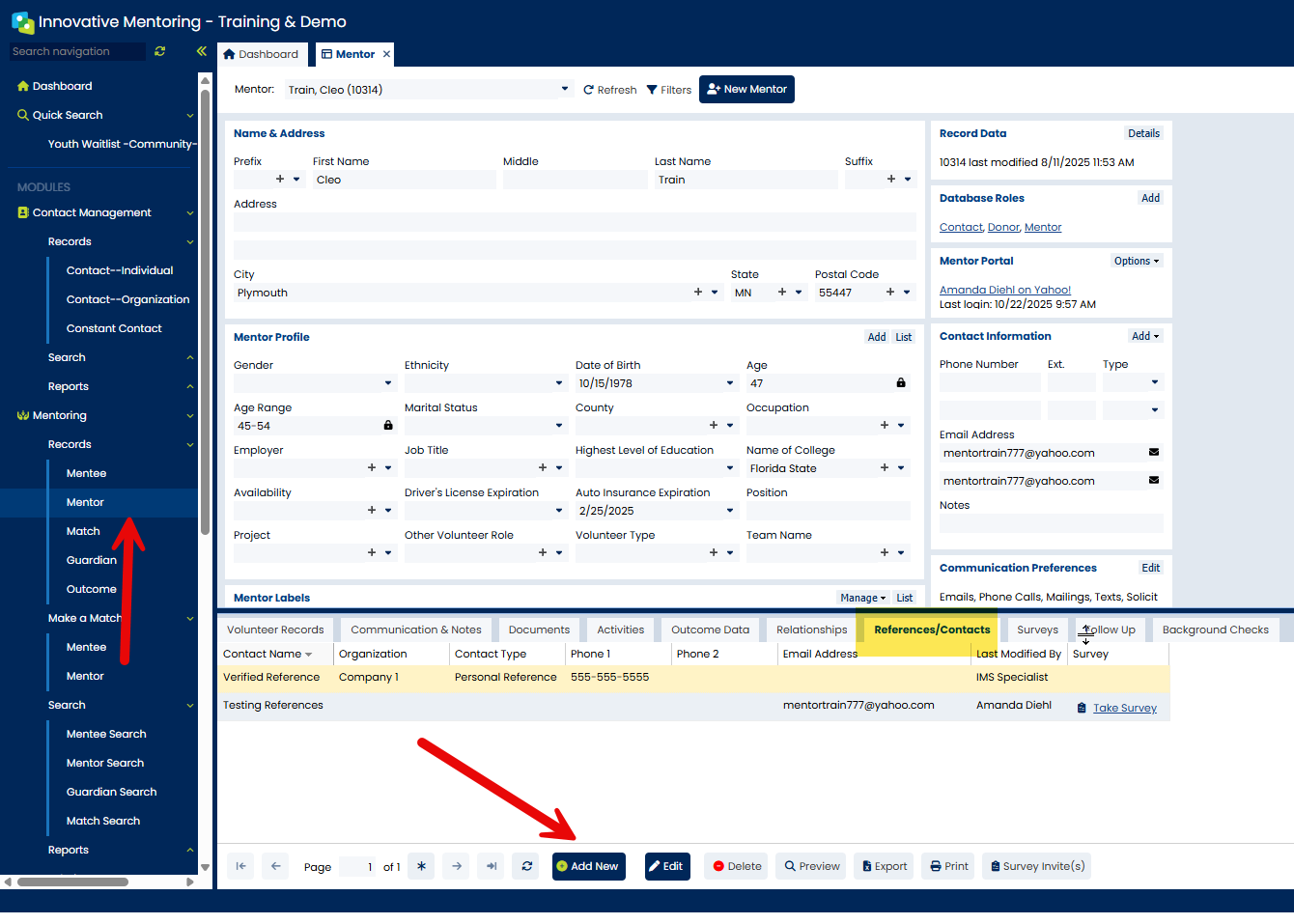 You will be able to select the Reference Check Survey and attach to a volunteer record.